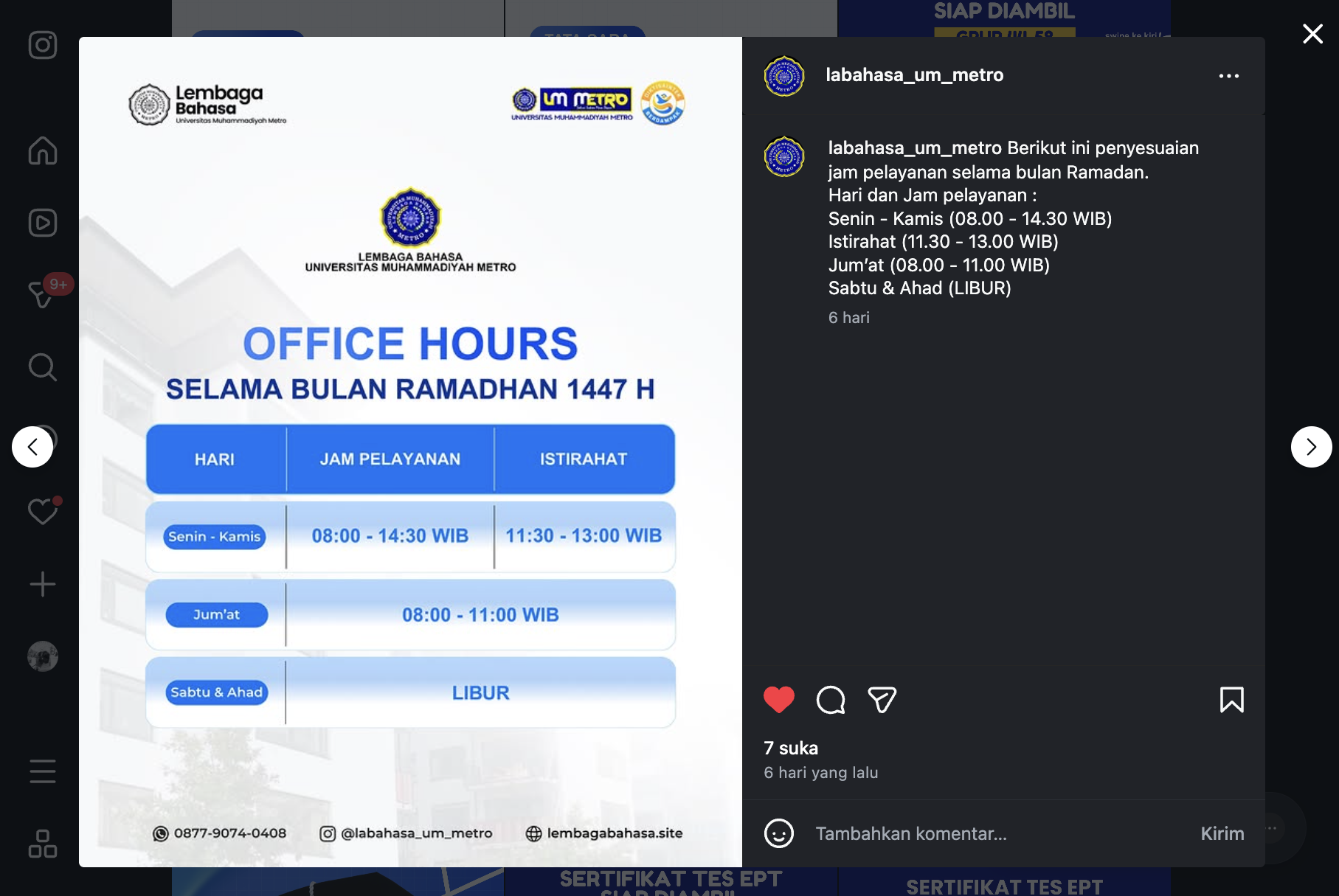 Senin-Ahad, Pukul 08:00-16:00 WIB